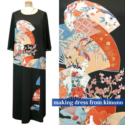 留袖 一点物の正絹留袖ドレス【新品の留袖地使用 留袖ドレス 着物ドレス ドレス リメイク 結婚式 参列 母親 親族 フォーマル マザーズドレス ワンピース パーティー ロング 袖あり 演奏会 30代 40代 50代 60代 日本製 送料無料 21号 大きいサイズ レンタルあり】1129
