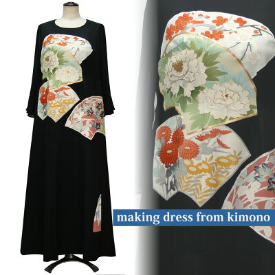 留袖 一点物の正絹留袖ドレス【新品の留袖地使用 留袖ドレス 着物ドレス ドレス リメイク 結婚式 参列 母親 親族 フォーマル マザーズドレス ワンピース パーティー ロング 袖あり 演奏会 30代 40代 50代 60代 日本製 送料無料 17号 大きいサイズ レンタルあり】1055