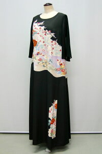 <この商品はメール便非対応商品です> サイズ 19号 バスト:120cm ウエスト:110cm ヒップ:130cm 丈:140cm 素材 表地:正絹(シルク100%)、裏地と袖:化繊 状態 新品の留袖からリメイク 製造国 日本 オーダーメイド、レンタルも承っております。
