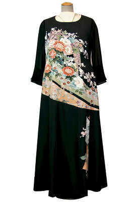 留袖 一点物の正絹留袖ドレス【新品の留袖地使用 留袖ドレス 着物ドレス ドレス リメイク 結婚式 参列 母親 親族 フォーマル マザーズドレス ワンピース パーティー ロング 袖あり 演奏会 30代 40代 50代 60代 日本製 送料無料 15号 大きいサイズ レンタルあり】01130