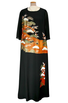 留袖 一点物の正絹留袖ドレス【新品の留袖地使用 留袖ドレス 着物ドレス ドレス リメイク 結婚式 参列 母親 親族 フォーマル マザーズドレス ワンピース パーティー ロング 袖あり 演奏会 30代 40代 50代 60代 日本製 送料無料 19号 大きいサイズ レンタルもあり】1131