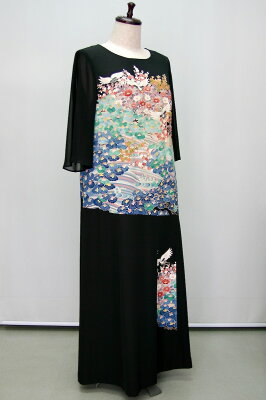 留袖 一点物の正絹留袖ドレス【新品の留袖地使用 留袖ドレス 着物ドレス ドレス リメイク 結婚式 参列 母親 親族 フォーマル マザーズドレス ワンピース パーティー ロング 袖あり 演奏会 30代 40代 50代 60代 日本製 送料無料 21号 大きいサイズ レンタルもあり】1161