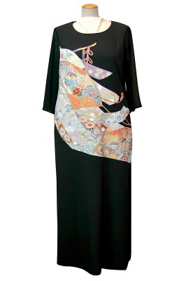留袖 一点物の正絹留袖ドレス【新品の留袖地使用 留袖ドレス 着物ドレス ドレス リメイク 結婚式 参列 母親 親族 フォーマル マザーズドレス ワンピース パーティー ロング 袖あり 演奏会 30代 40代 50代 60代 日本製 送料無料 23号 大きいサイズ レンタルもあり】01125