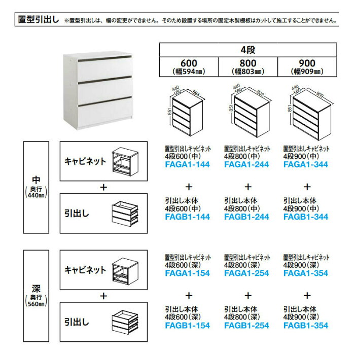 大建工業【内部ユニット FiTIO(フィティオ)置型引出しキャビネット(引出しは別売り) 4段・600(深) FAGA1-154 1入】ダイケン DAIKEN 旧カンタナ