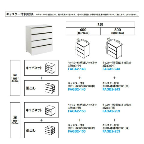 大建工業【内部ユニット FiTIO(フィティオ)キャスター付き引出しキャビネット(引出しは別売り) 3段・800(深) FAGA2-253 1入】ダイケン DAIKEN 旧カンタナ