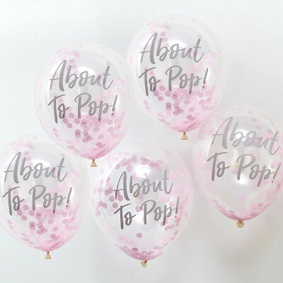 メール便可!【Gingerray】ロンドンから届いた<ピンク>Baby shower パーティーバルーン コンフェッティがセットされたクリア(透明)バルーン 5ピースセット