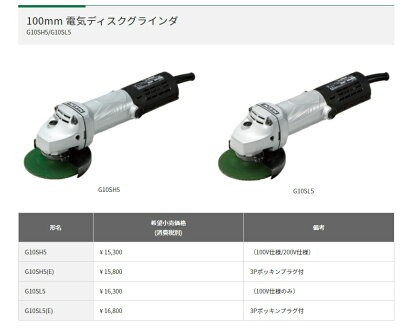 メーカー名工機ホールディングス(株)プラス名称 ハイコーキ(旧:日立)商品名HiKOKI ディスクグラインダー100MM型式G10SH5SSメーカー希望小売価格【税抜】15300円(税抜)オレンジブック2020年 5 0235ページ発注コード820-2729JANコード4966376254026特長●電気用品安全法新基準に対応しています。
