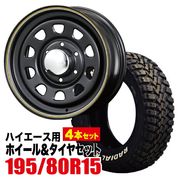 ホイール ×4本センターキャップ ×4個■タイヤ詳細MUDSTAR RADIAL M/T (マッドスター ラジアルエムティ)ホワイトレターデザイン性にもすぐれた強固なサイドウォール!洗練されたトレッドパターンでトラクションを向上!【ハイエース荷重対応】■チェックポイント200系ハイエース/レジアスエースへの装着の場合、フェンダー内に収まるサイズとなっております。
