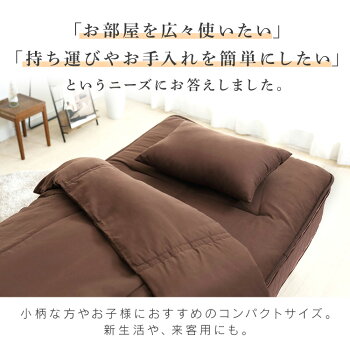 持ち運びや収納に便利なコンパクト布団5点セット。