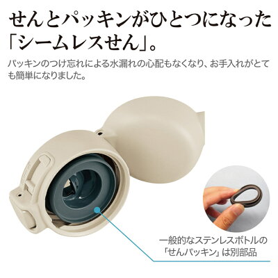 ※ 保冷効力とは、室温20℃±2℃において製品に冷水を取扱説明書に記載の位置まで満たし、縦置きにした状態で水の温度が4℃±1℃の時から6時間放置した場合におけるその水の温度 口径 約 4cm 保証期間お買い上げ日より 電気製品ではないため、保証はありません 特徴 ■せん”と“パッキン”がひとつになった「シームレスせん」 「外して洗うパッキン」が、せん一体型の1部品に。
