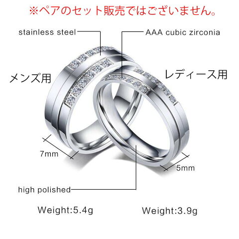 [ カップル用ペアリング] フォーエバーラブステンレスリング(RWI037)メンズ サイズ/23号/26号 レディース サイズ/13号/15号 キュービックジルコニア AAA クリスタル サージカルステンレス316L製 キラキラ パベ パヴェ 3連風 おしゃれ ブライダル ウエディング