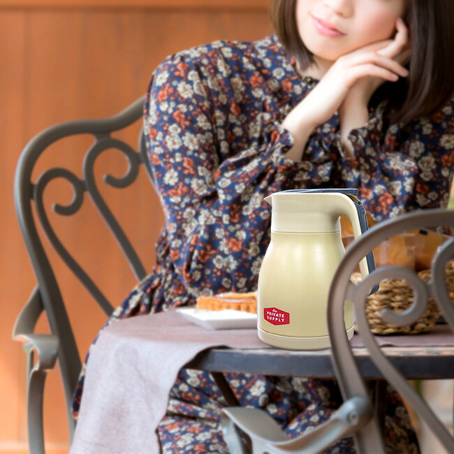 卓上ポット 保温 1L ベージュ | 保温ポット 水筒 ポット 魔法瓶 コーヒー ステンレス ティーポット 卓上 保冷ポット お茶 ジャグ 1リットル 紅茶 おうちカフェ ステンレスポット ティー コーヒーポット ステンレスジャグ テーブルポット 夏休み リビングポット 麦茶ポット
